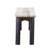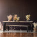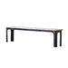 In lieu of perfectly sanding down all traces of past use, the upcycled wood of the Textures Bench uses these small mars as enhancements. The Textures Bench has a seat composed of boards of bleached wood that contrast with its dark brown rustic iron base and legs. The Textures Bench is designed to pair with the Textures Dining Table.