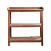 We collected a number of durable three-tier shelves from throughout India and upcycled them into a Vintage Bleached Show Rack. These display or storage shelves are fitted with a short backboard and separators across the top shelf for better-organizing items. Each Vintage Bleached Show Rack showcases the natural wood revealed by the bleaching process. The wood is finished with a water-based sealer. Size, design, and condition vary slightly.