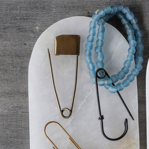 Designed like an oversized safety pin from the 18th century, the iron-forged Launders Pin is finished in antique gold. Use decoratively with a scar...