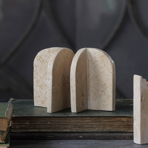 Crafted from the durable yet porous travertine stone, the Tivoli Bookend, Pair is polished for a handsome finish. The cream-tone stone with beige v...