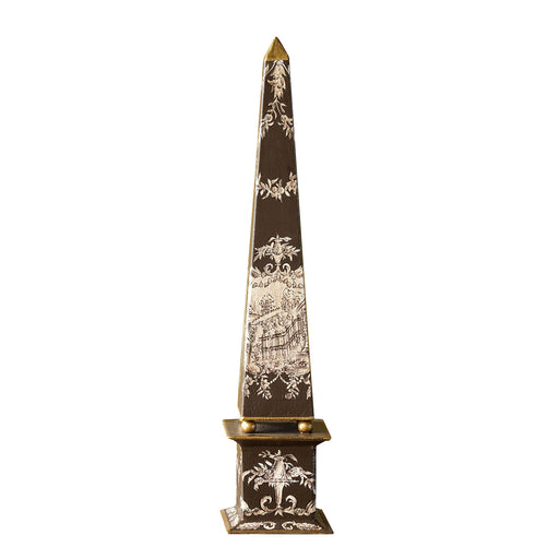 Crafted on a small scale, the Hand-Painted Toile Obelisk has a deep brown base enhanced with ivory-hued imagery that differs on each of its four si...