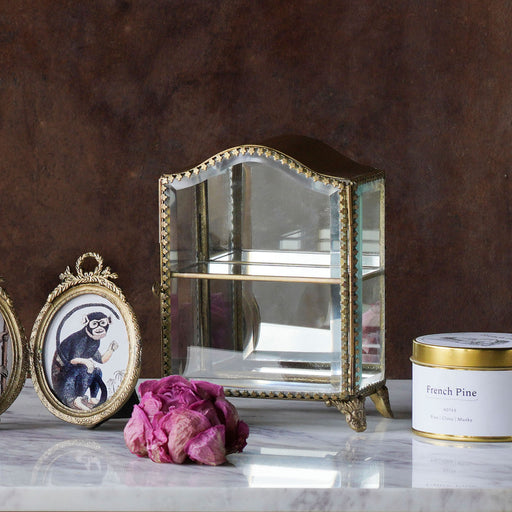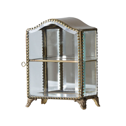 The quaint Ormolu Arch Top Display Box has a Victorian-era feel. This clear-glass display box is framed with antique brass claw feet, top, and fili...
