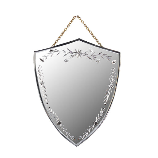 Set atop a wood base, the bevel-edged Elle Shield Mirror is etched around its perimeter with an evergreen and berry motif. The small accent mirror ...