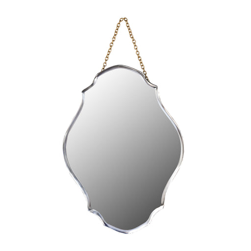The Elle Medallion Mirror, with its enhanced oval-like shape, features sleek beveled edges and has a wood backing. The small accent mirror has an a...