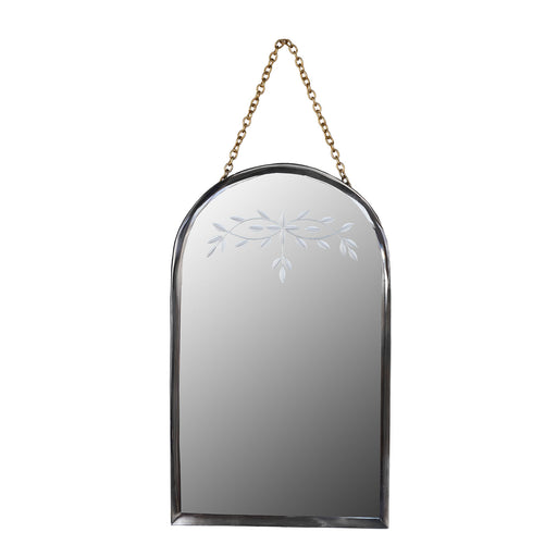 Across its arched -top, the bevel-edged Elle Arched Mirror is etched with a thin-leaf motif. The mirror is set with a wood back for durability. The...