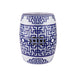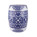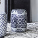 Use as a table or stool; either way, the Jingdezhen Hand-Painted Garden Stool with Lattice embodies traditional details that suit a modern or farmhouse décor. The porcelain stool is an antique reproduction and features intricate navy blue lattice-inspired detail over a white background.