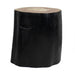 A rugged tree stump is transformed into a sleek seating option with the Stumped Stools smoothed, black-painted exterior. The top of the Stumped Seat is finished to enhance the natural wood grain. The Stumped Stool can be used as a table or occasional seat. With the carved handle indentations on each side, moving this piece is easy.