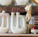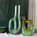 The whimsical Tamegroute Sculptural Marrakesh grabs you with its unique oversized "handle" cutout and two candlestick holders. We love the fun this handmade accent adds. Available in Tamegroute Green and Unglazed Clay.