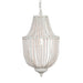 Draped in white birch-bead strands, the Bella Chandelier, Medium is crafted sophistication. Bring a hint of glamour and elegance honed from simple, natural materials that combine to make an elegant French farmhouse look. The chandelier features a steel frame and makes a delightful addition to dining, living, entry or bedroom. The Bella Chandelier, Medium takes 1 type (B) bulb. 40 watt max. Hardwire kit and canopy provided. UL Approved.