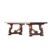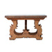The Sevilla Tables are denoted by their historical, artisan legs. Newly crafted from pine wood, the Sevilla Coffee Table has angel-harp-like leg supports that run vertically along both ends of the table. The gentle, undulating curves of the legs are supported by an organically shaped pine arm on each side. The Sevilla Coffee Table offers a spacious tabletop finished in a weathered antique brown.
