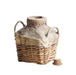 The exterior of the Vintage Rice Wine Vessel is crafted of tightly woven willow reeds. Used to hold wine, our collection of Vintage Rice Wine Vessels are naturally colored with the patina of time and use. These vessels contain a spout and handle. These are not food-safe vintage items and should be used decoratively. Style, condition and shape may vary.