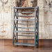 With four tiers, the Vintage Tiered Wood Shelf Large is constructed from repurposed natural wood sourced from India. The Large Vintage Tiered Wood Shelf is stress-painted in a variety of colors and features decorative horizontal slats across the back of the frame. Size and design vary.
