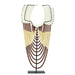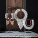 Abelam is a traditionally agrarian society that lives in the East Sepik province of Papua New Guinea. In traditional villages across the region, each tribe has decorative neck ornamentation unique to their culture. The Abelam Necklace on Stand is made of swooping strands of deep crimson and cream wood beads. The top is styled with a thick collar of Spotted Marginella shells on the left and right sides.