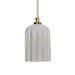 Carved from a single piece of translucent alabaster marble, the Alabaster Pendant Lamp has fluted sides and casts a warm glow. Accented by metal and natural cork, it has a six-foot fabric chord.