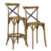 A best seller, the classic bistro style of our Crossroads collection brings comfort and class to any décor. This stool is handmade of wood with an iron crisscross backing, the finish highlights the natural beauty of the materials.