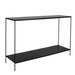 Simple versatility abounds with the Nottingham Tables. The gun-metal frames are enhanced by two black marble shelves. The Nottingham Console Table works in entryways, living or dining rooms.