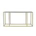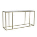 Airy and modern, the Stella Table Collection provides a polished look. With a white-and-gray marble top and brass-finished, open-metal frame, the Stella Tables complement a high-style room. Also available in coffee and side tables.
