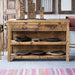 The Timber Frame Island is the perfect blend of function and sustainable style. The Timber Frame Island is rectangular and fits two counter stools on one side. The other side of the counter is designed to provide extra storage and includes two drawers and an open shelf. Made from hand-picked reclaimed factory beams and floor planks, the Timber Frame Island is an eco-friendly and moveable kitchen accent.