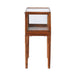 Crafted from old tables sourced in India, the Vintage Teak Shop Cases use the original wood frame, though newly finished in a warm brown that highlights the character of each piece. Old wood panels are replaced with a glass top and glass sides, including the drop-down front panel, for easy placement of items. The eye-catching Vintage Teak Shop Cases have an open-air base.